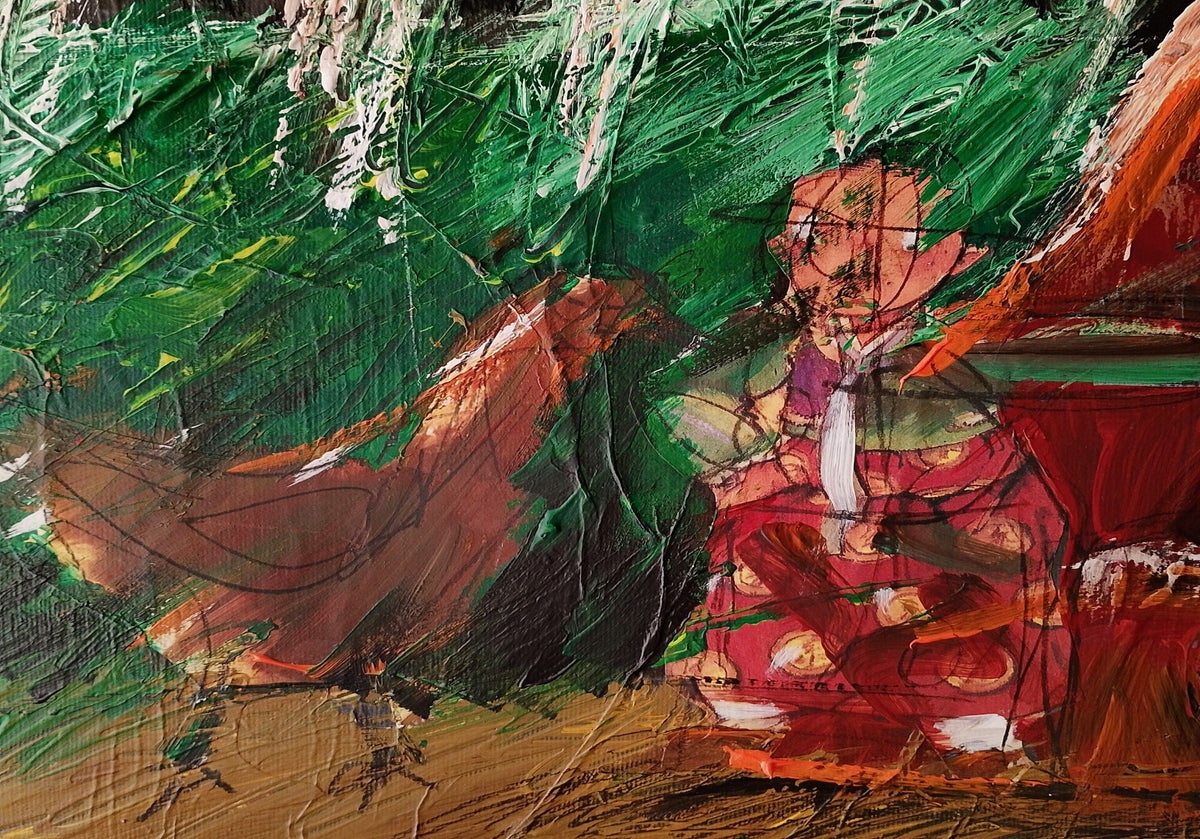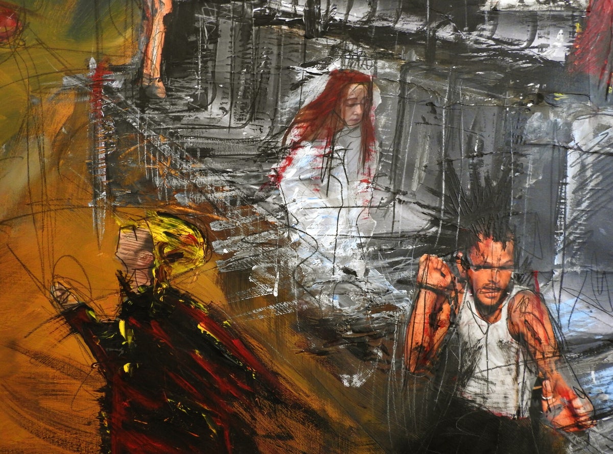 Su queste tele, i personaggi recitano come su un palcoscenico teatrale. Sono figure in continuo movimento nelle menti di chi guarda: attori di carta che non impongono una verità, ma invitano ogni spettatore a interpretare il proprio racconto.