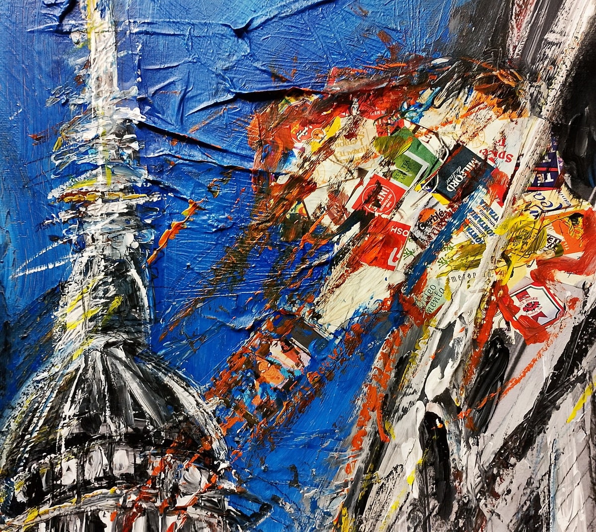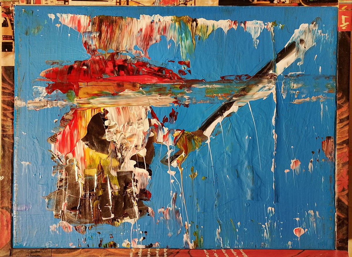 Tecnica: Collage pittorico e acrilico su tela.